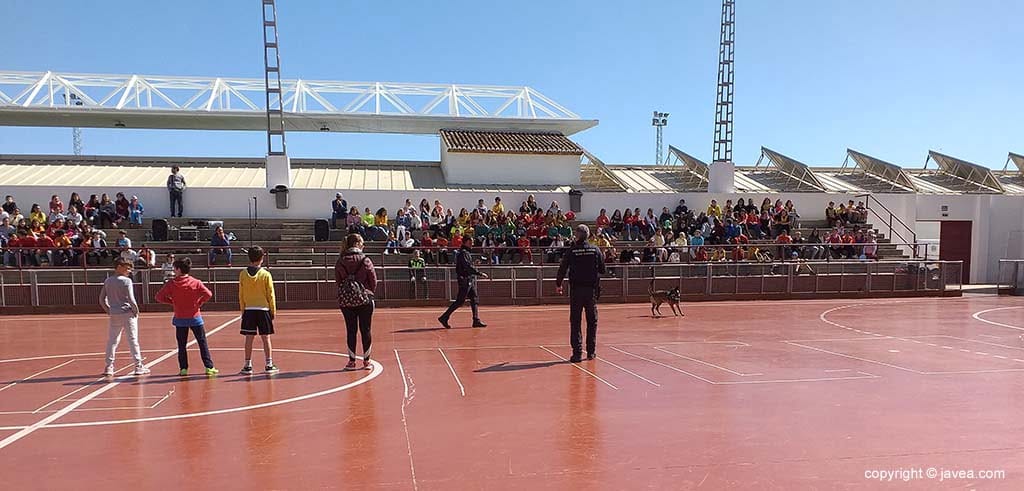 La jornada de convivencia ha contado también con la participación de la Unidad Canina de la Policía Local de Alicante que ha hecho una demostración. En concreto, Sena se ha encargado de buscar un arma de fuego entre varias personas que previamente habían salido al centro de la pista polideportiva.