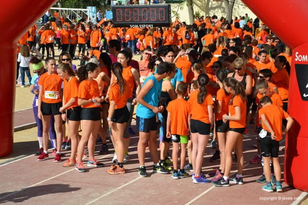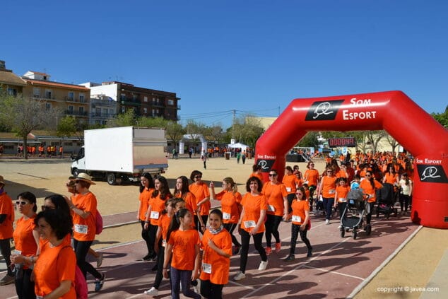 Un año más, la Cursa de la Dona llena de éxito la pista de atletismo de Xàbia así como su recorrido. Una marea de mujeres vestidas de color naranja han realizado el trayecto de esta carrera no competitiva realizada con motivo del Día de la Mujer. Un total de 800 participantes, entre los que también se encontraban hombres, han reivindicado los derechos de igualdad y han colaborado, solidariamente, con dos asociaciones.