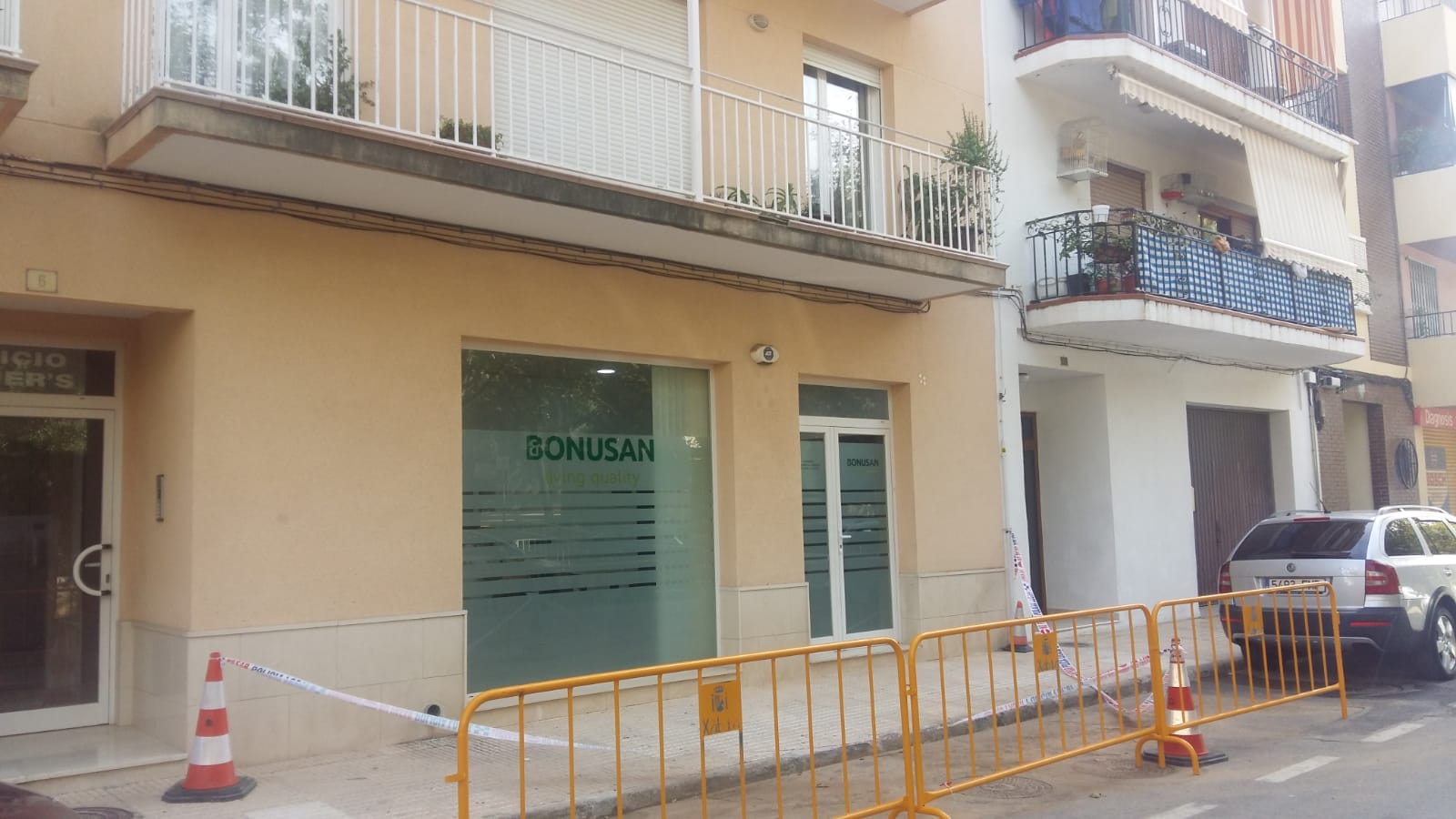 Desde ayer jueves, un edificio de cuatro plantas de la zona Thiviers, situado en la calle Juan Ramón Jiménez, está acordonado por la Policía a causa de desprendimientos de ladrillos en las salidas de los balcones.