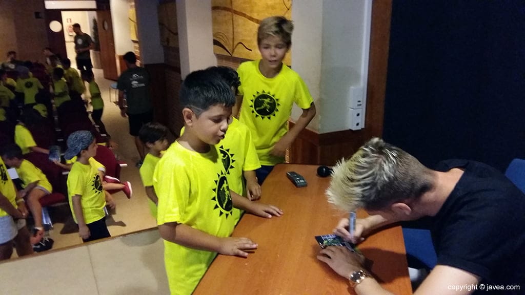Niños pidiendo autógrafos a Adrián Ortolá.
