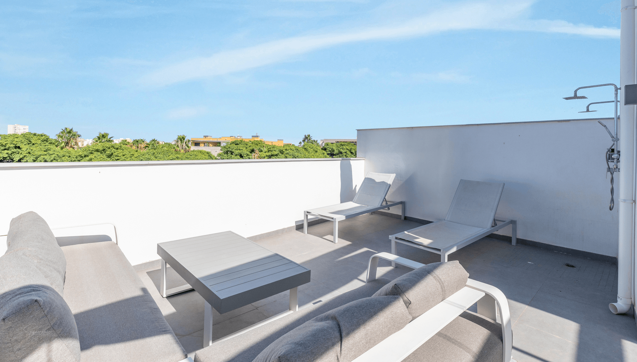 Apartamento moderno de tres niveles con terraza privada, garaje y piscina comunitaria en el Arenal