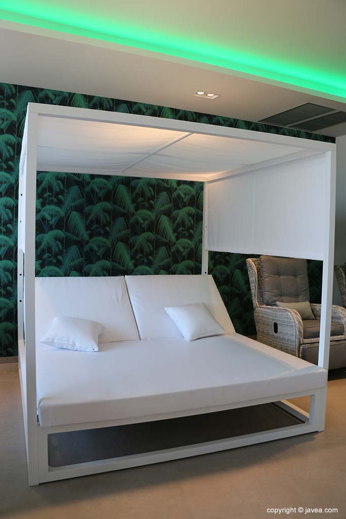 Con pérgola para protegerte del sol.