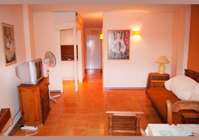 El apartamento cuenta con 55m2 construidos, distribuidos en un dormitorio, un baño, cocina y un acogedor salón-comedor con chimenea. Y además también dispone de piscina comunitaria.