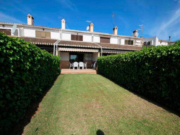 Se trata de una casa con 125m2 construidos, además cuenta con piscina y jardines comunitarios y un espacio con césped privado. En la casa encontramos tres dormitorios, dos baños, armarios empotrados, terraza con toldo, garaje, trastero y cristales de doble acristalamiento.