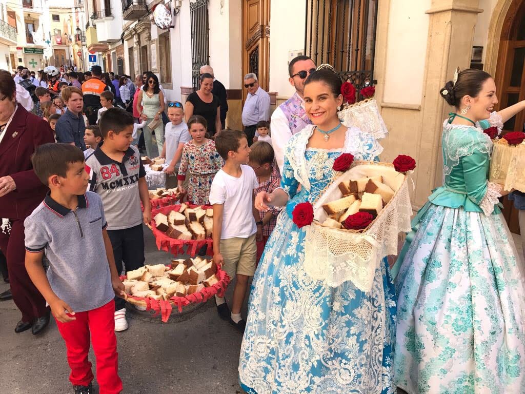 Las fiestas continuaron el domingo con la celebración de los actos religiosos en honor a la Virgen de la Rosa. La bendición y el reparto de 120 Pans Beneïts a todos los vecinos de la localidad fue el evento destacado. Una tradición de las más arraigadas y singulares del municipio en la que participan los festeros, niños y niñas del pueblo, quienes desfilaron por las calles con cestas de panes bendecidos, acompañados por la banda de música y la Colla la Llebetjà.