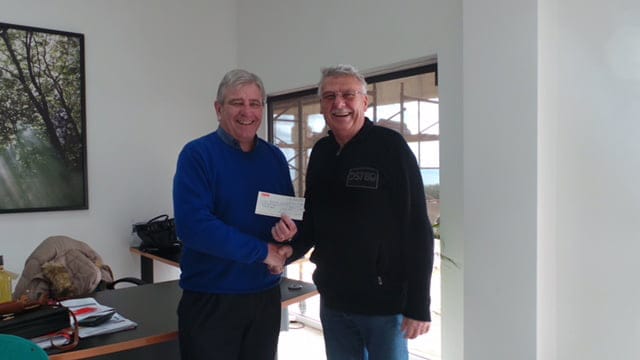 En esta ocasión, el vicepresidente de Cumbre Residents Association(CRA), Paul Davies, ha donado una cheque de 1000 euros, de parte de la comunidad de Pueblo Panorama 3, al presidente del colectivo de bomberos de la urbanización Cumbre del Sol, Dieter Munkelt.