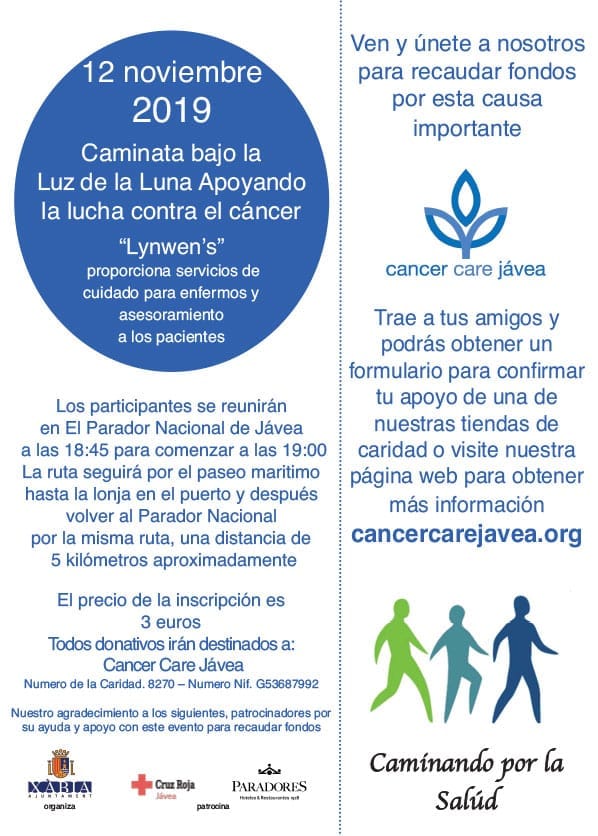 En la tarde del martes 12 de noviembre, de la mano de la Asociación Cancer Care Jávea, se llevará a cabo una caminata nocturna por Xàbia con el fin solidario de ayudar a la lucha contra el cáncer. La aportación es de 3 euros para realizar esta ruta de 5 km que llevará por el Primer Montañar hasta el puerto de Jávea y vuelta.