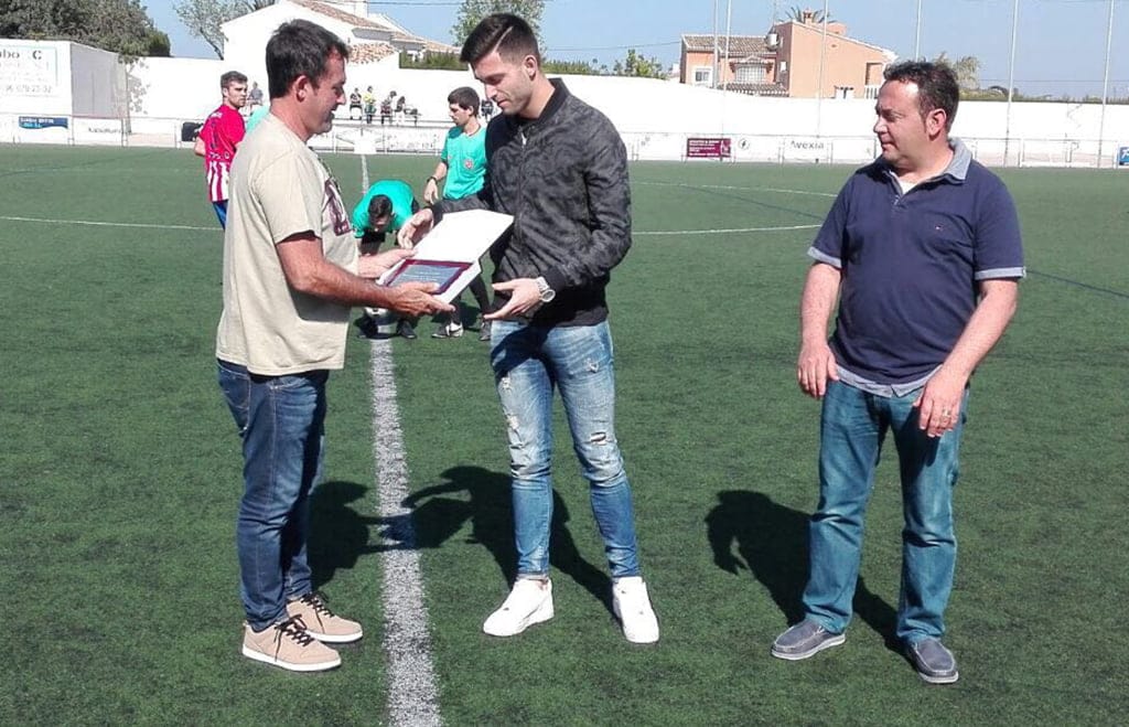 La entrega de este obsequio fue en los prolegómenos del partido que el CD Jávea disputó ante el CD Alcoyano. El presidente del club xabiero, David Tíscar, fue quien le entregó la placa conmemorativa. Junto a Tíscar también estuvo el vicepresidente, José Miguel Esteve.