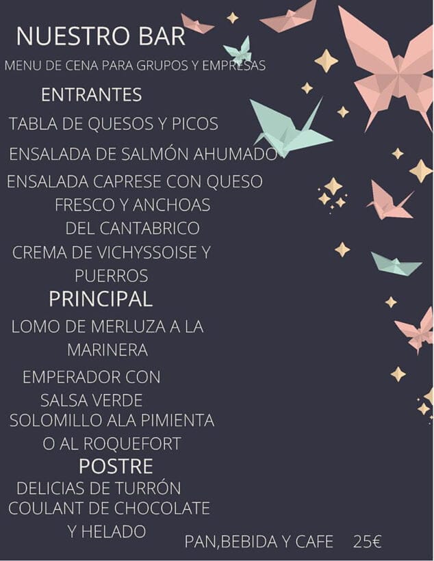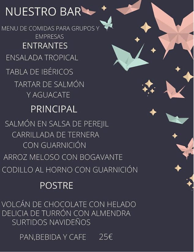 Nuestro Bar ya está preparando las Navidades. Por ello, ha elaborado dos menús, uno para comidas y otro para cenas, para las celebraciones de grupos y empresas.