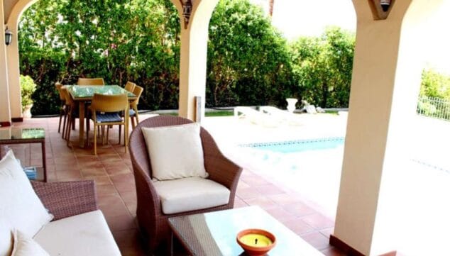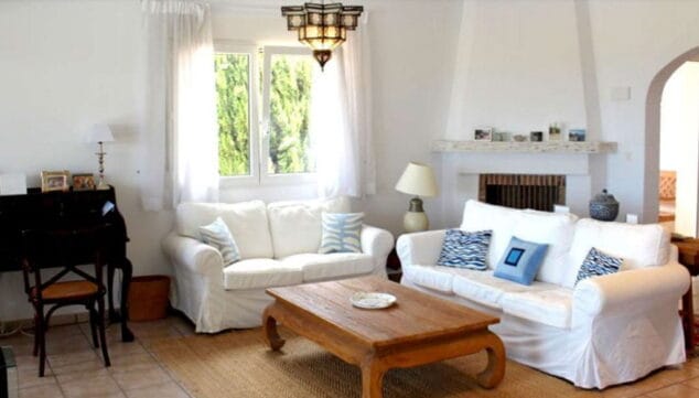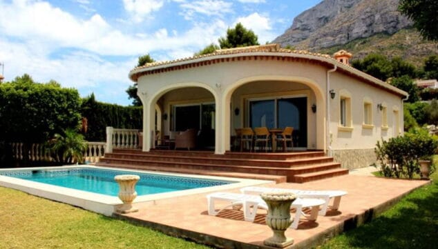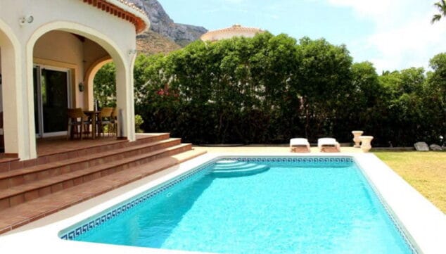 La villa está situada en Dénia, y tiene un exterior para disfrutar: con jardín y piscina privada de 8×4 metros, rodeados del Montgó y en frente del mar. Con una zona de porche cubierto de 30 m2 en la que se puede hacer vida todo el año.