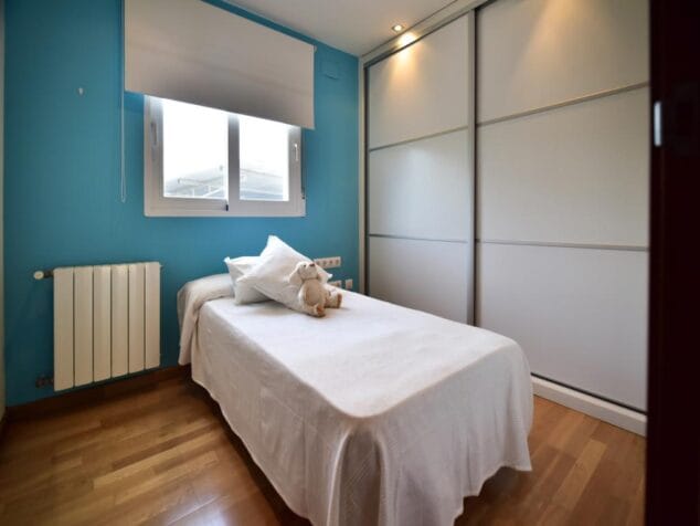 En los 140 m2 del interior hay cuatro dormitorios, dos baños completos, una cocina moderna, salón-comedor y sala de estar con chimenea. Uno de los dormitorios tiene acceso por una escalera a un espacio que puede convertirse en despacho o sala de juegos. Los suelos son de gres y de tarima flotante.