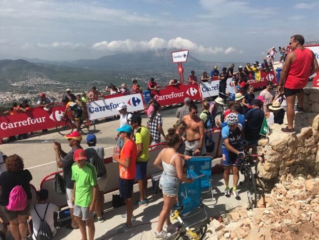 La asociación de jubilados del Poble Nou de Benitatxell vibró del ciclismo en una grada especial. Mientras, la comisión de las fiestas de Santa María Magdalena de 2018 Mai amb el got buit montó tres puestos de venta de refrescos. Apretó el calor y el público agradeció contar con bebidas frescas.