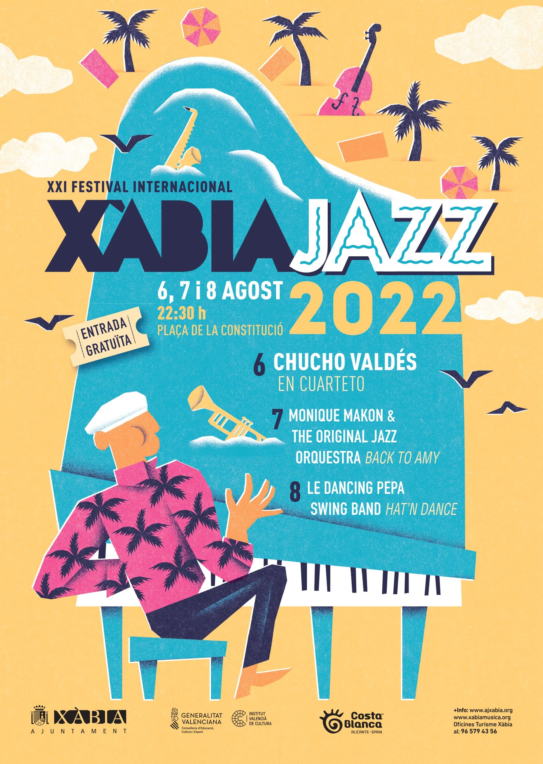 06 de julio de 2022 - 15:43 Foto Anterior2 de 2Ver el artículo original: Chucho Valdés abrirá la 21ª edición del Xàbia Jazz Presentación de Xàbia Jazz 2022 Cartel del Festival de Xàbia Jazz 2022