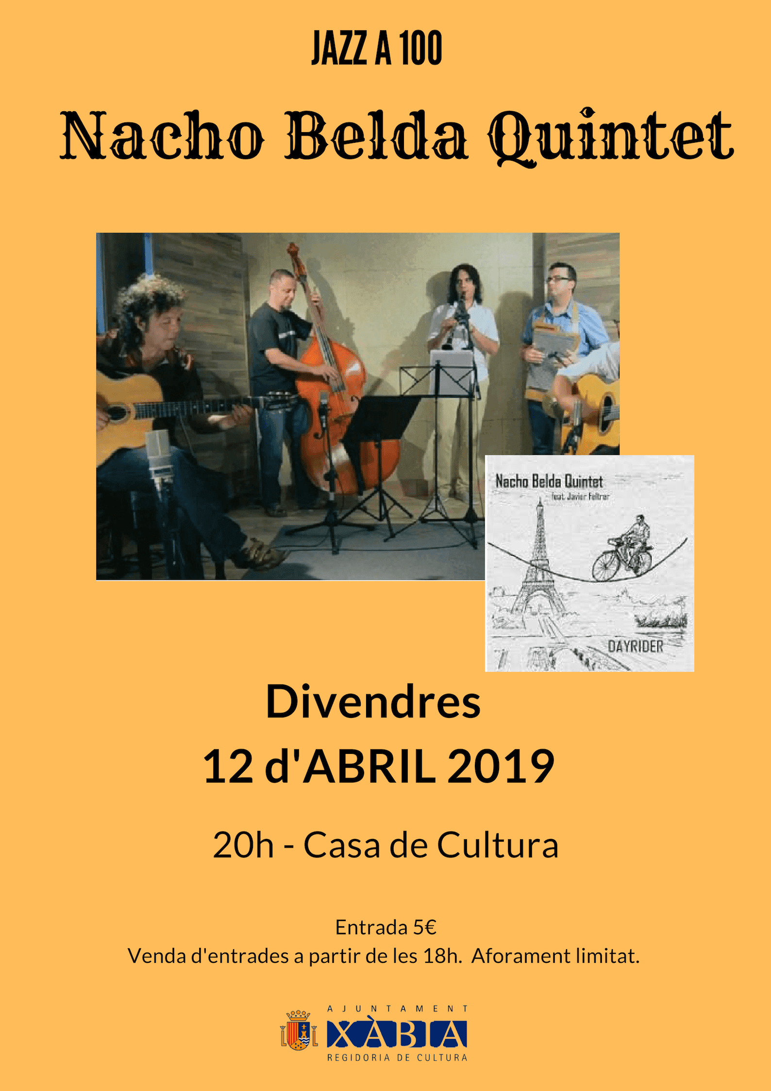 Xàbia acoge un nuevo concierto del ciclo Jazz a 100. La cita será el viernes 12 de abril con la actuación del Quinteto acústico del guitarrista valenciano Nacho Belda. Una propuesta moderna inspirada en el manouche o gypsy jazz de tinte más clásico.