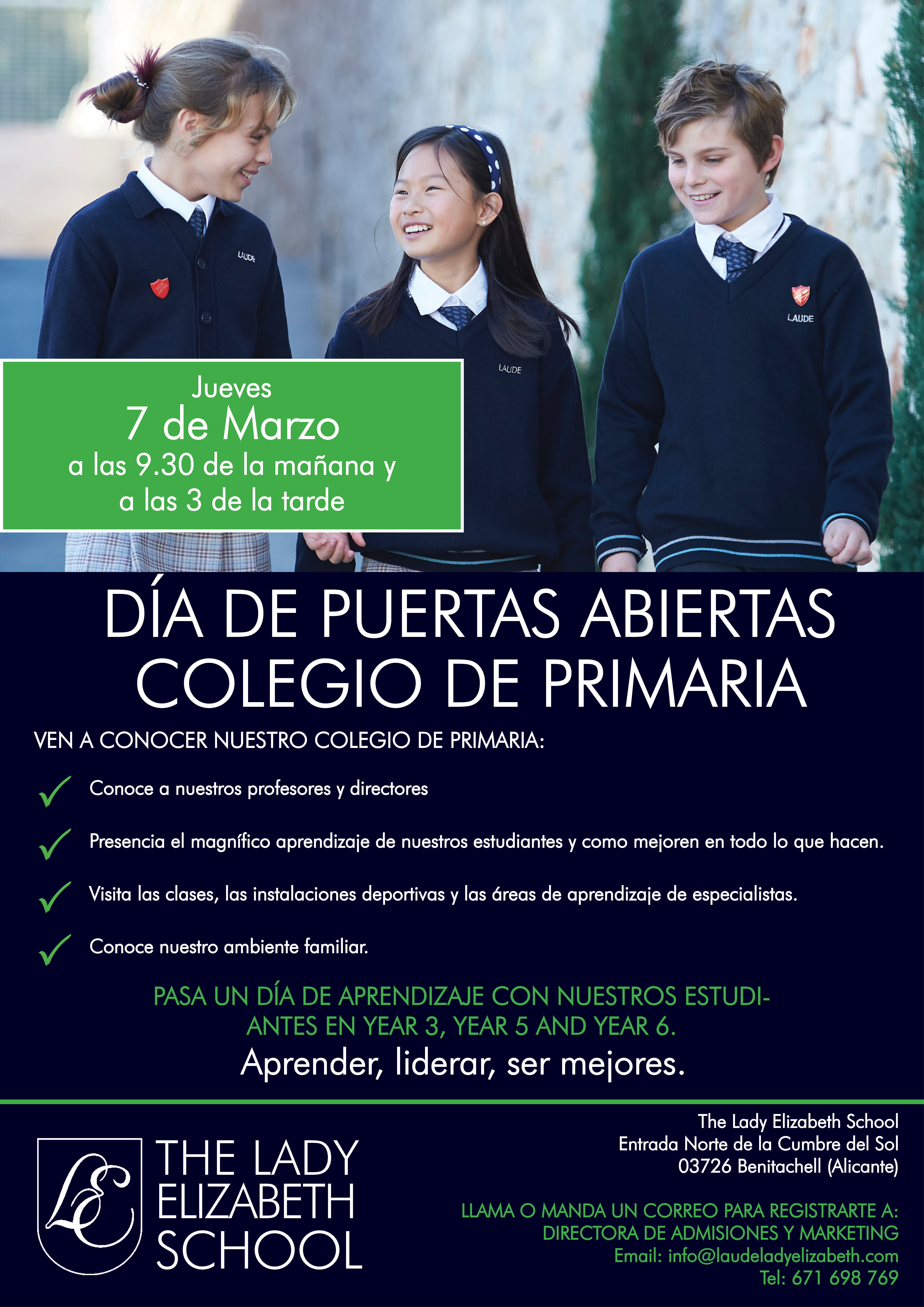 El colegio internacional The Lady Elizabeth School abrirá las puertas al público el próximo 7 de marzo, en una jornada de puertas abiertas, para dar a conocer las instalaciones y dinámica de trabajo, en el nivel de primaria, a todas las familias que lo deseen.