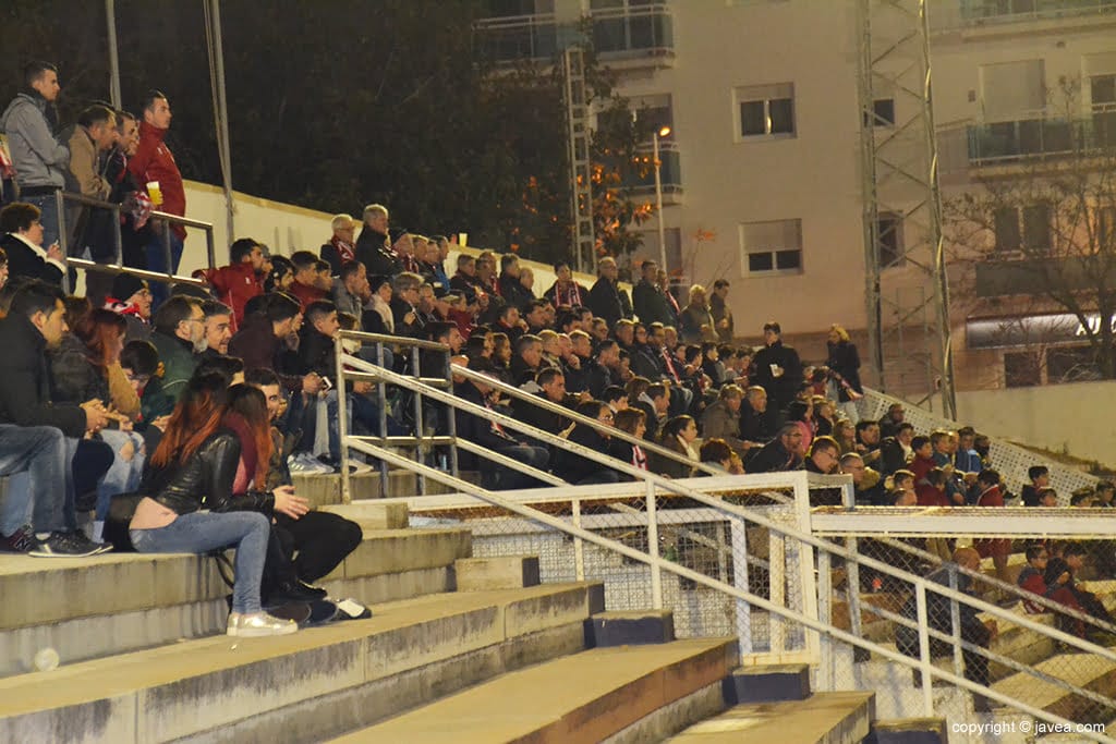 Al final, el clásico del Montgó entre el CD Jávea y el CD Dénia se pudo disputar con la dura competencia de la Champions y del Real Madrid. A pesar del horario y de la temperatura, hubo más gente de la esperada en la grada, aunque menos de la que se merece un partido de esta rivalidad. Muchas bufandas rojiblancas lucieron los aficionados locales, no era para menos, la cuestión fue soportar la temperatura.
