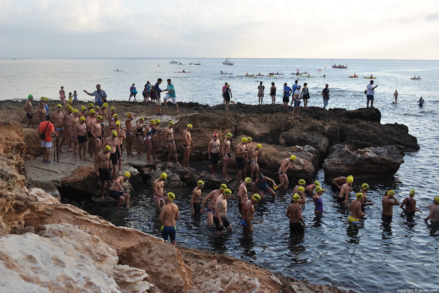 Nadadores de la prueba de 4.500 metros en La Caleta antes de comenzar.