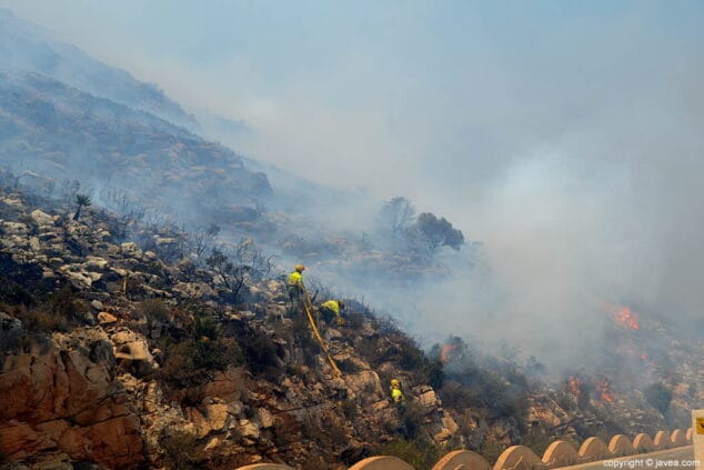Una vez se ha dado la voz de alarma los dispositivos de emergencia se han desplazado hasta la zona para comenzar con las labores de extinción de un incendio que se ha propagado hasta el otro lado de la montaña con rapidez. De esta manera, Guardia Civil, ocho medios aéreos de toda la provincia, tres brigadas, dos autobombas, una unidad de vigilancia, efectivos del parque comarcal de bomberos, bomberos voluntarios de Cumbres del Sol y la Policía Local de Teulada, Poble Nou y Jávea se han coordinado para que las llamas alcanzaran la menor parte de montaña posible.
