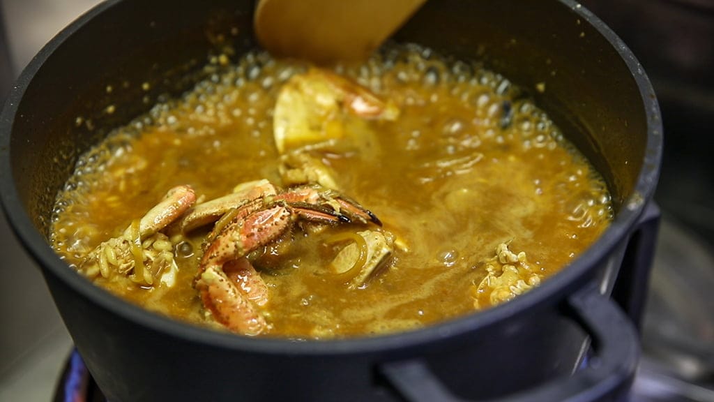 Cocción del arroz de buey de mar.