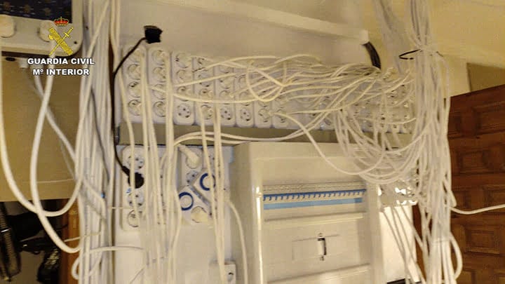 Además, los responsables de los cultivos se habían conectado a la red eléctrica de manera ilícita, mediante enganches ilegales, llegando a alcanzar las tres casas, según los registros medidos por la empresa eléctrica, la cantidad de 80.000kw, es decir, el consumo habitual de 50 viviendas domésticas.