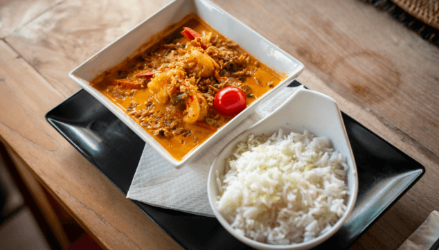 En Bali Café te proponen diferentes platos del día para degustar de la forma los sabores asiáticos. De lunes a sábado podrás probar platos tradicionales como el curry verde, tallarines de arroz con salsa de tamarindo con pollo o gambas, estofado de ternera al estilo indonesio, curry Besengek de pollo o gambas, curry rojo tailandés o curry amarillo.
