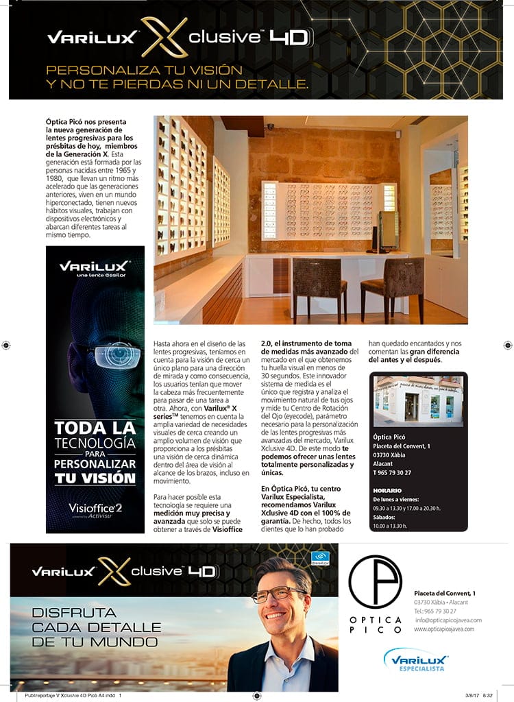 18 de septiembre de 2017 - 10:41 1 de 4Foto SiguienteVer el artículo original: Descubre las nuevas lentes progresivas Varilux Xclusive en Óptica Picó AF-Publireportaje-V-Xclusive-4D-Pico-A4-(1) V Xclusive 4D Óptica Picó V Xclusive 4D Óptica Picó Nueva tienda Optica Pico
