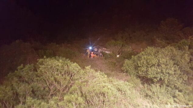 Alrededor de las 21:30 horas de hoy martes, un vehículo que circulaba por la carretera de Las Planas en dirección a Xàbia ha perdido el control del coche al tomar una curva y se ha precipitado al barranco desplazándose cerca de 30-40 metros.