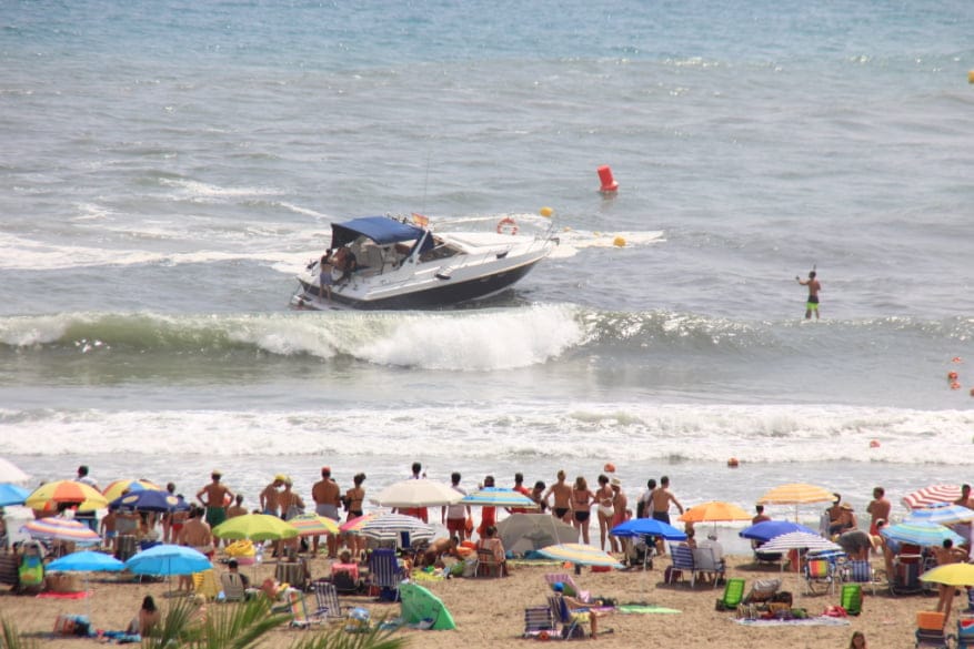 En la jornada de hoy viernes, la bandera roja luce en la playa del Arenal por el fuerte oleaje que ha provocado dos incidentes a lo largo de la mañana. Por un lado, alrededor de las 12 del mediodía, una embarcación ha provocado momentos de tensión al quedar encallada la hélice y ser arrastraba por las olas hasta la orilla donde se encontraban los bañistas.