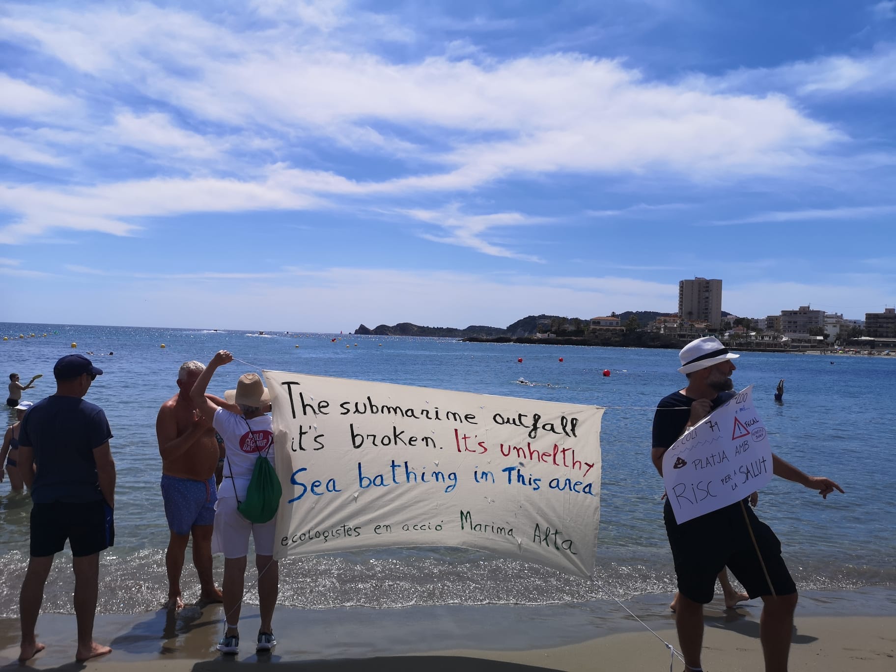06 de junio de 2022 - 09:56 Foto Anterior2 de 6Foto SiguienteVer el artículo original: Ecologistas en Acción se manifiesta en la playa del Arenal ante la rotura del emisario Cartel que mostraba ecologistas en acción Ecologistas en acción con la pancarta Ecologistas en acción informando en la playa del Arenal La pancarta colgada en el tramo norte de la playa del Arenal Pancarta de Ecologistas en Acción sobre la rotura del emisario Punto donde se encuentra el emisario