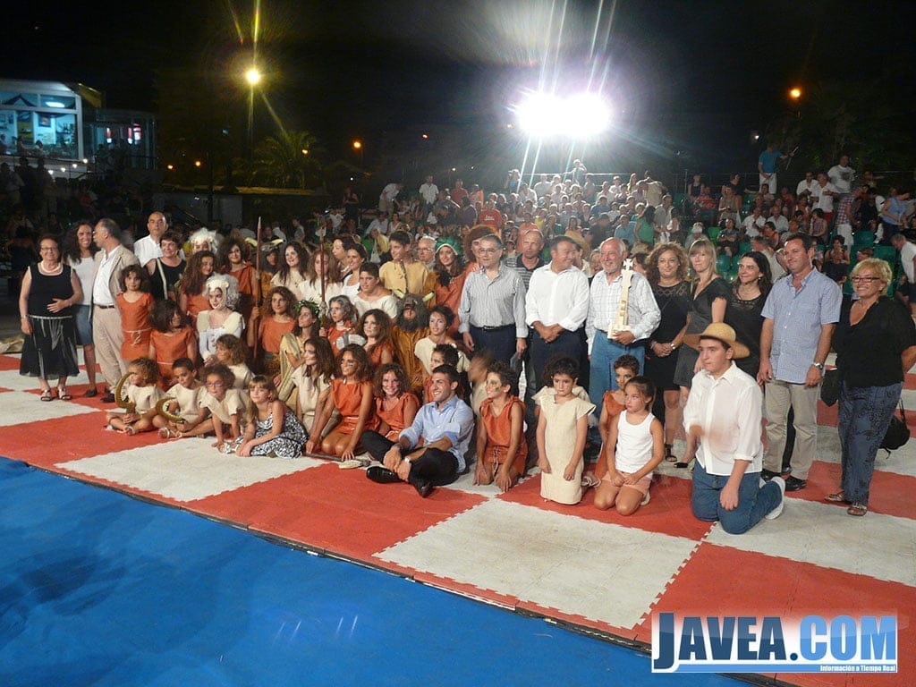 Foto de familia de los participantes, conductores de las fichas y organización del Ajedrez Viviente de Jávea.