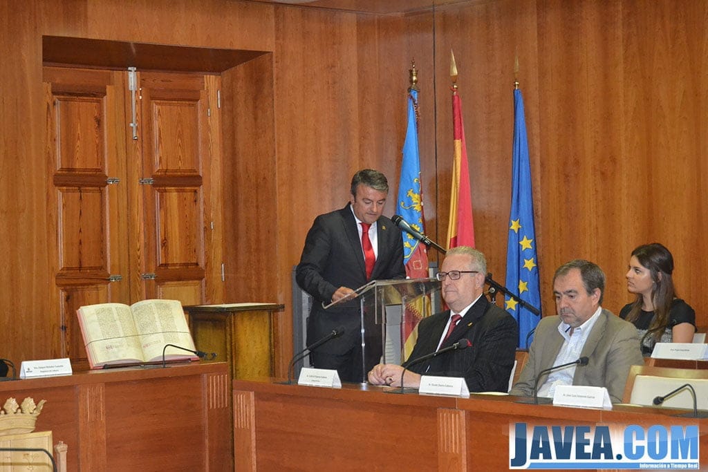 El alcalde de Jávea, José Chulvi, durante su discurso que clausuró el acto institucional del 9 de octubre.