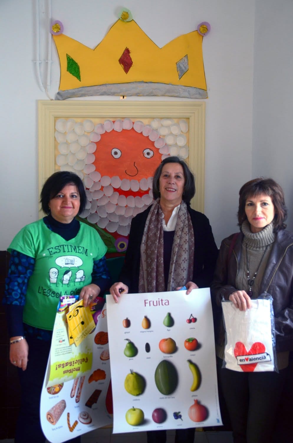 La edil de cultura y educación repartiendo el material para promover el valenciano en el Colegio Público Graüll.