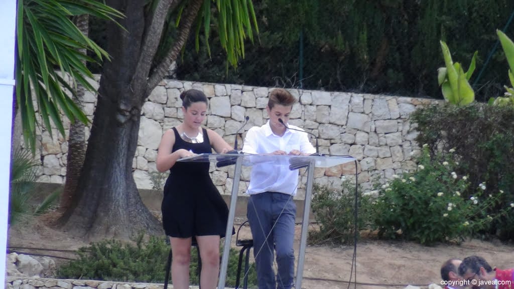 Presentadores de la proclamación infantil de las fiestas de Fogueres de Xàbia 2015.