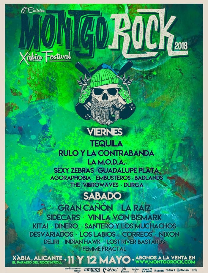 Los amantes del rock podrán disfrutar de esta cita con la mejor música del panorama del panorama nacional. La primera jornada de Montgorock Xàbia Festival del 11 de mayo la encabezará Tequila, la mítica banda liderada por Ariel Rot y Alejo Stivel que arranca su gira ese mismo día y que actuará en exclusiva en festivales de la Comunidad Valenciana en este evento. Junto a ellos se subirán también al escenario Rulo y La Contrabanda, La M.O.D.A., Sexy Zebras, Guadalupe Plata, Agoraphobia, Embusteros, Badlands, The Vibrowaves y Dûrga.