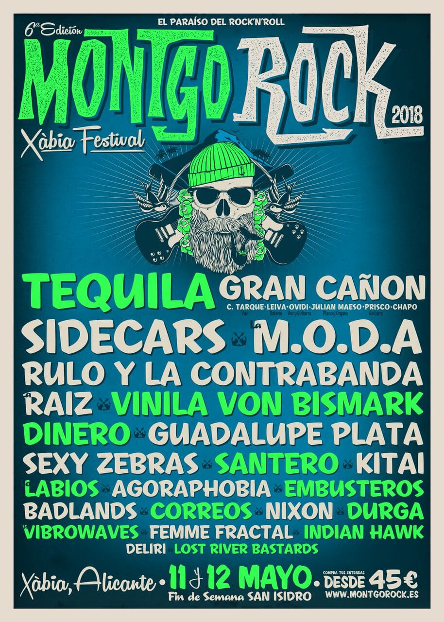 El cartel del Montgorock Xàbia Festival se ha cerrado con ocho nuevas confirmaciones, todas ellas de grupos nacionales: Kitai, Desvariados, Correos, Dûrga, Indian Hawk, Deliri, Lost River Bastards, Femme Fractal se unen a los artistas ya anunciados; Rulo y La Contrabanda, Sidecars, La M.O.D.A., La Raíz, Vinila Von Bismark, Guadalupe Plata, Dinero, Agoraphobia, Sexy Zebras, Santero y Los Muchachos, Badlands, Los Labios, Nixon, The VibroWaves, Embusteros y como no, a los cabeza de cartel: Tequila, la mítica banda liderada por Ariel Rot y Alejo Stivel y Gran Cañón, el supergrupo formado por Leiva, Carlos Tarque (M Clan), Ovidi (Los Zigarros) y Julián Maeso.