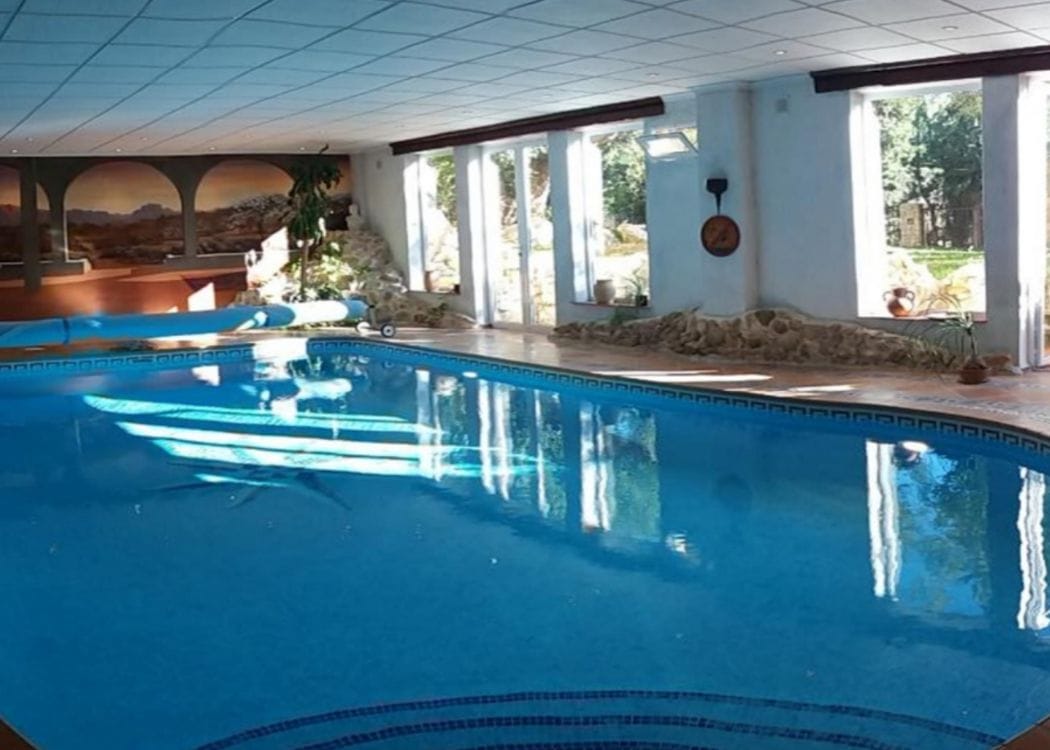 11 de mayo de 2022 - 15:41Piscina interior climatizada, con cristaleras con vistas a los jardines Foto Anterior6 de 15Foto SiguienteVer el artículo original: El pintoresco hotel con encanto de la Costa Blanca que ahora está en venta Baño rústico con bañera y ducha Dormitorio con sofá y tocador Habitación con jacuzzi Hotel de estilo rústico en venta en la Costa Blanca Jardín con ajedrez gigante Piscina climatizada interior con vistas al jardín Piscina climatizada interior con zona de gimnasio Salón estilo rústico del hotel en venta Sauna del hotel en venta en la Costa Blanca Zona de comedor con chimenea de piedra en el centro Zona de golf del hotel en venta Zona de salón de estilo rústico Zona del dormitorio sofá y mesa auxiliar Zona exterior del hotel en venta en plena naturaleza Romántico hotel de lujo en venta en la Costa Blanca