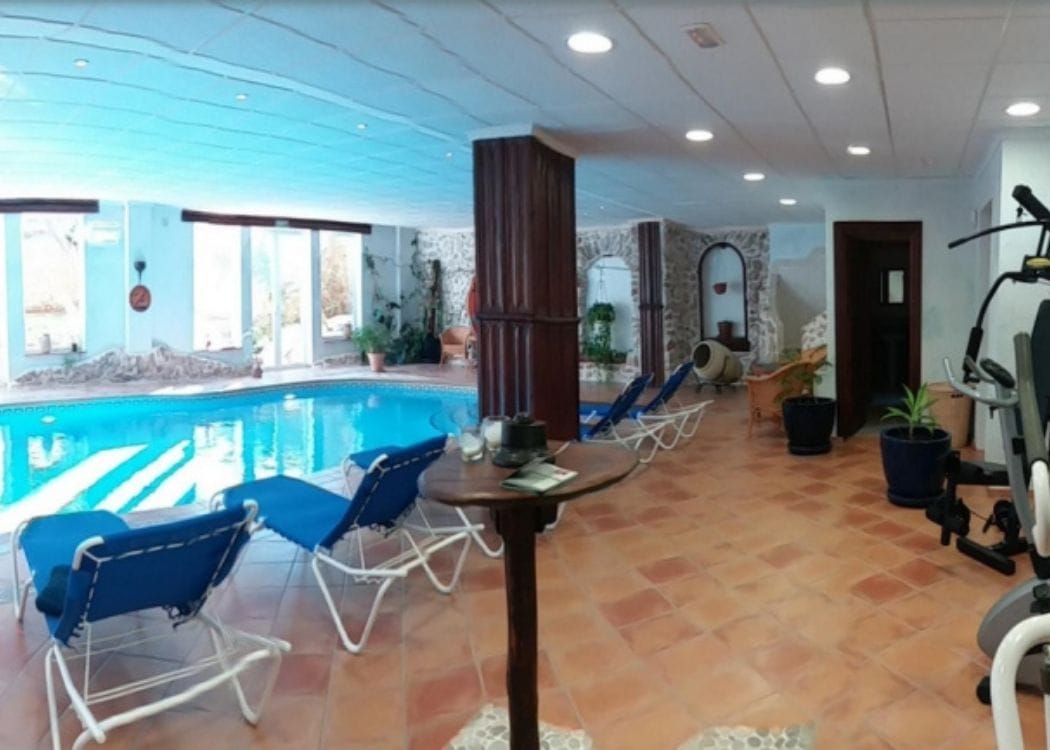 11 de mayo de 2022 - 15:41Zona de la piscina cubierta climatizada, con tumbonas y zona de gimnasio Foto Anterior7 de 15Foto SiguienteVer el artículo original: El pintoresco hotel con encanto de la Costa Blanca que ahora está en venta Baño rústico con bañera y ducha Dormitorio con sofá y tocador Habitación con jacuzzi Hotel de estilo rústico en venta en la Costa Blanca Jardín con ajedrez gigante Piscina climatizada interior con vistas al jardín Piscina climatizada interior con zona de gimnasio Salón estilo rústico del hotel en venta Sauna del hotel en venta en la Costa Blanca Zona de comedor con chimenea de piedra en el centro Zona de golf del hotel en venta Zona de salón de estilo rústico Zona del dormitorio sofá y mesa auxiliar Zona exterior del hotel en venta en plena naturaleza Romántico hotel de lujo en venta en la Costa Blanca