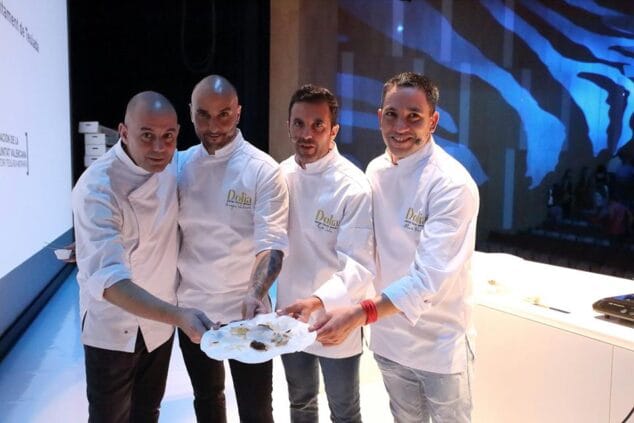 Y como colofón final, los cuatro chefs versionaron el dulce tradicional y exclusivo de Teulada La Dama con uva moscatel. Un dulce típico que se come en febrero el Día de San Blas y que los cuatro pintaron en una creación en exclusiva.