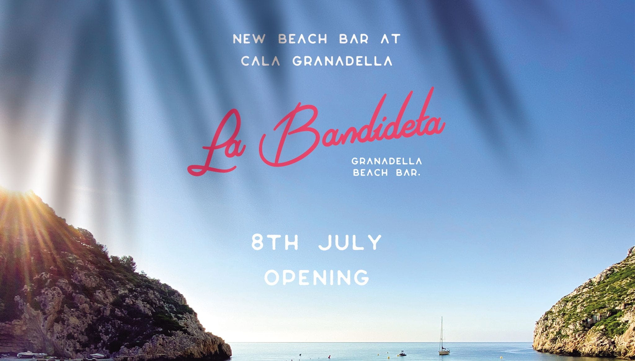30 de junio de 2020 - 09:41Un lugar para refrescarse, desconectar, picotear o celebrar una buena comida frente al mar. Foto Anterior3 de 5Foto SiguienteVer el artículo original: El próximo 8 de julio abre La Bandideta, el nuevo beach bar en la Cala de la Granadella Logotipo La Bandideta Cartel anunciador de la apertura de La Bandideta Cartel de la apertura de La Bandideta Imagen corporativa de La Bandideta Vista cenital de la Cala Granadella – La Bandideta