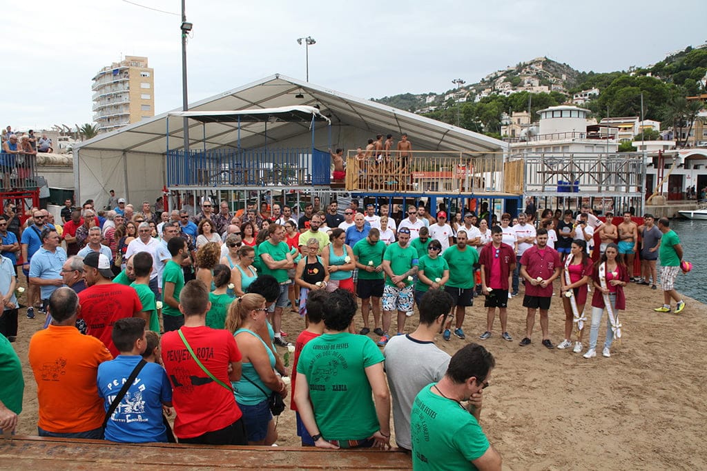 Un minuto de silencio y el lanzamiento al mar de rosas blancas por Edu Monfort, José Moya y Vicente Serrat ha marcado el inicio de los cinco días de toros y el tradicional baret dels bous.