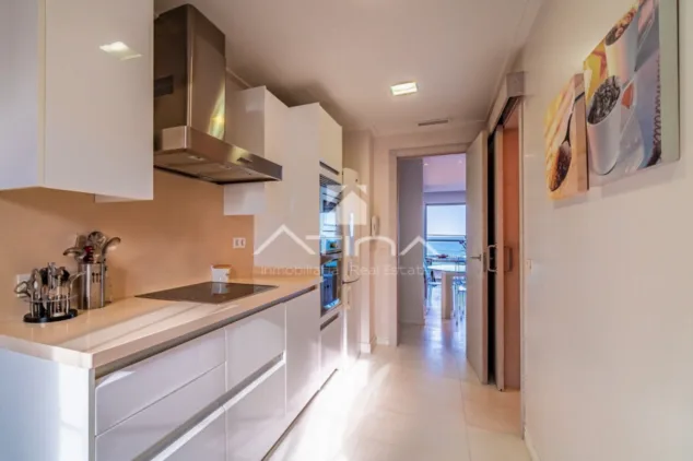 El apartamento se distribuye en salón-comedor, dormitorio principal con baño en suite y salida a la terraza, 2 dormitorios dobles con baño compartido y una cocina completamente equipada con zona de lavadero.