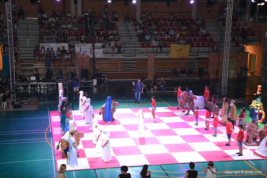 El Ajedrez Viviente de Xàbia alcanza este año su vigésimo tercera edición y la Comissió de Festes Mare de Déu de Loreto está trabajando, desde hace meses, en la nueva edición de este evento con el fin de ofrecer una nueva representación de esta modalidad escénica y cultural, pionera en el municipio (llevada a cabo por voluntarios y voluntarias) y que se caracteriza por su peso pedagógico, crítico y original con el aval del título de Fiesta de Interés Turístico Nacional.