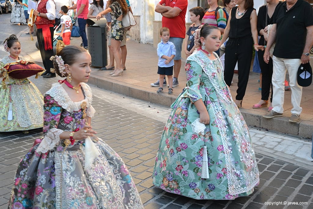 Los niños y niñas recorren las calles de Xàbia hasta llegar al escenario donde realizarán la proclamación de la reina infantil