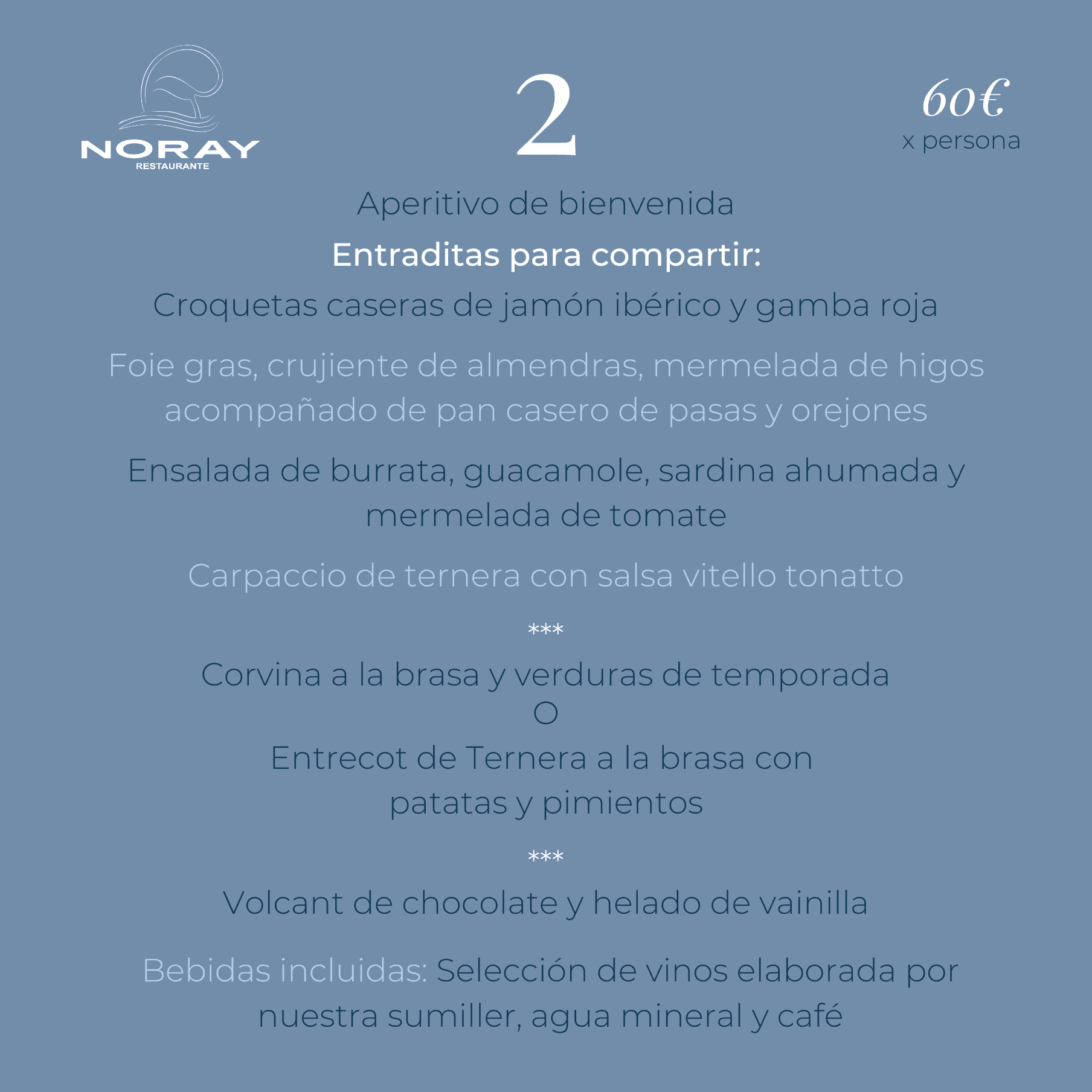 17 de noviembre de 2022 - 11:03Consigue este menú de empresa por 60€ por persona Foto Anterior2 de 4Foto SiguienteVer el artículo original: Estos son los tres menús de empresa que Restaurante Noray ha elaborado para estas fiestas Opción 1 de Menú empresa 2022 de Restaurante Noray Opción 2 de Menú empresa 2022 de Restaurante Noray Opción 3 de Menú empresa 2022 de Restaurante Noray Reúnete con tu equipo este 2022 en Restaurante Noray