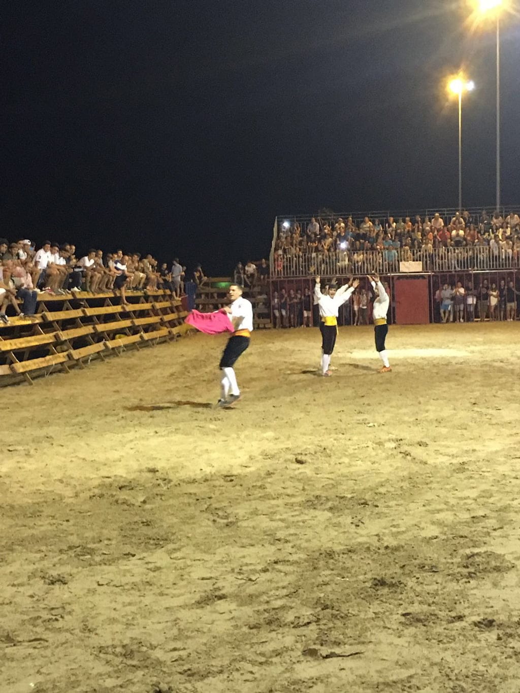 03 de septiembre de 2016 - 14:55Tras torear al toro 1 de 10Foto SiguienteVer el artículo original: Éxito en el I Concurso de Recortadores de les Festes del Loreto Recortadores en su momento de acción Uno de los recortadores lesionado Las mayoralesas con los clasificados Entrega de trofeos Los recortadores con los protagonistas de las fiestas Cada clasificado con su trofeo Aforo completo Los tres grupos de recortadores Salto del recortador Los trofeos