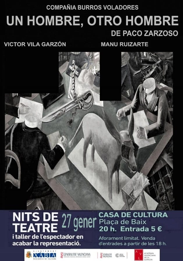 La otra cita con la cultura llega de la mano del teatro con la obra Un hombre, otro hombre, de la compañía Los Burros Voladores, escrita por Paco Zarzoso e interpretada por Víctor Vila Garzón y Manu Ruizarte. La historia habla del mundo burocrático y el sistema deshumanizado de trabajo desde la poesía, el humor y el absurdo.