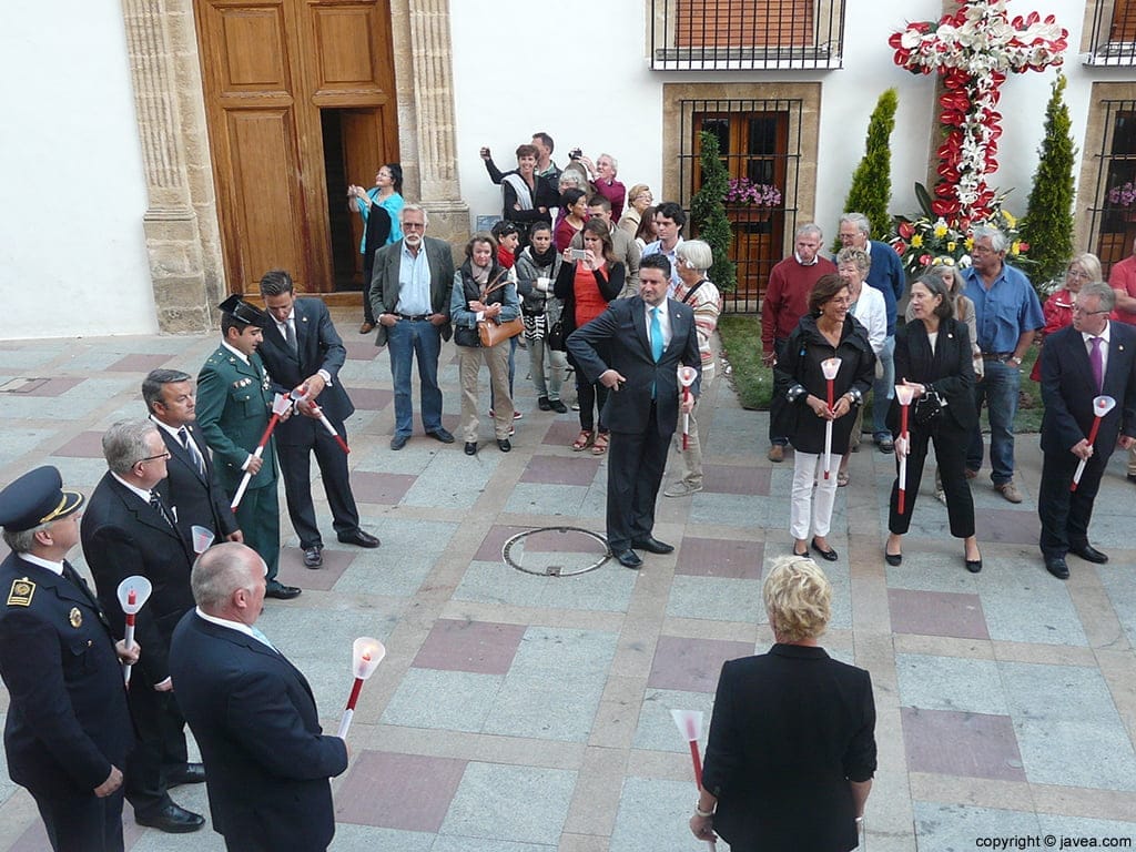 Las autoridades en la plaza de la iglesia de Jávea en el comienzo de la procesión de Jesús Nazareno.