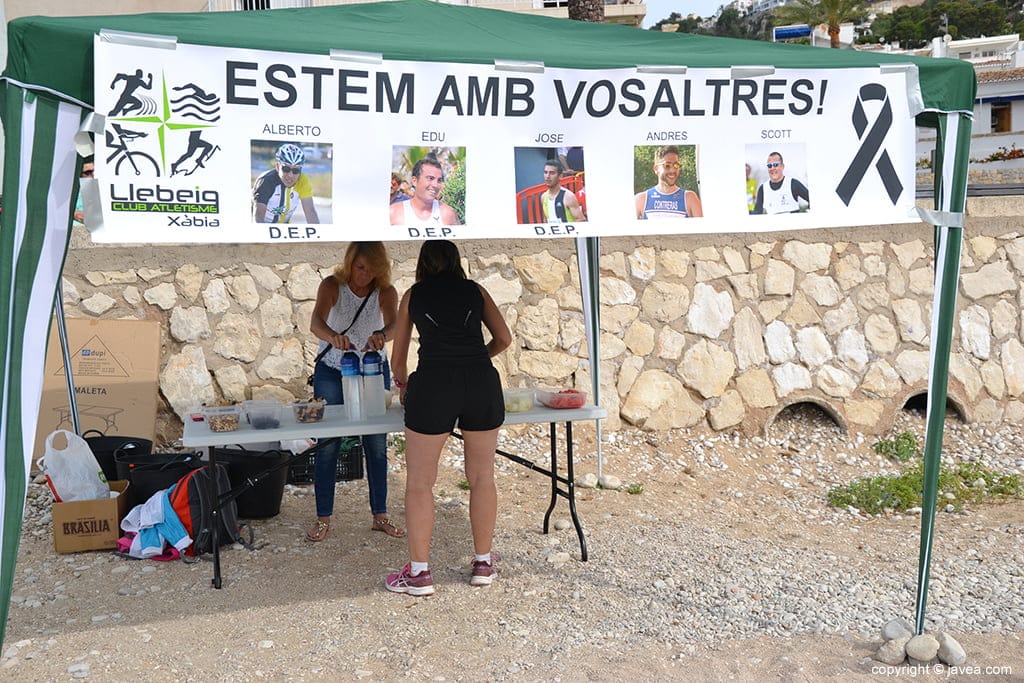 21 de mayo de 2017 - 11:23Cartel del Club Atletismo LLebeig Foto Anterior3 de 10Foto SiguienteVer el artículo original: Un gran grupo de personas nadan en recuerdo a Edu, José y Alberto Grupo de nadadores que participan en la travesía A la llegada de los nadadores Avituallamiento preparado por miembros del Club Atletisme Llebeig José Ramón con el globo a su llegada a la meta José Ramón García durante la travesía José Ramón junto a los nadadores Travesía a nado en recuerdo de los tres ciclistas xabieros Travesía a nado en recuerdo de los tres ciclistas xabieros Travesía a nado en recuerdo de los tres ciclistas xabieros Travesía a nado en recuerdo de los tres ciclistas xabieros
