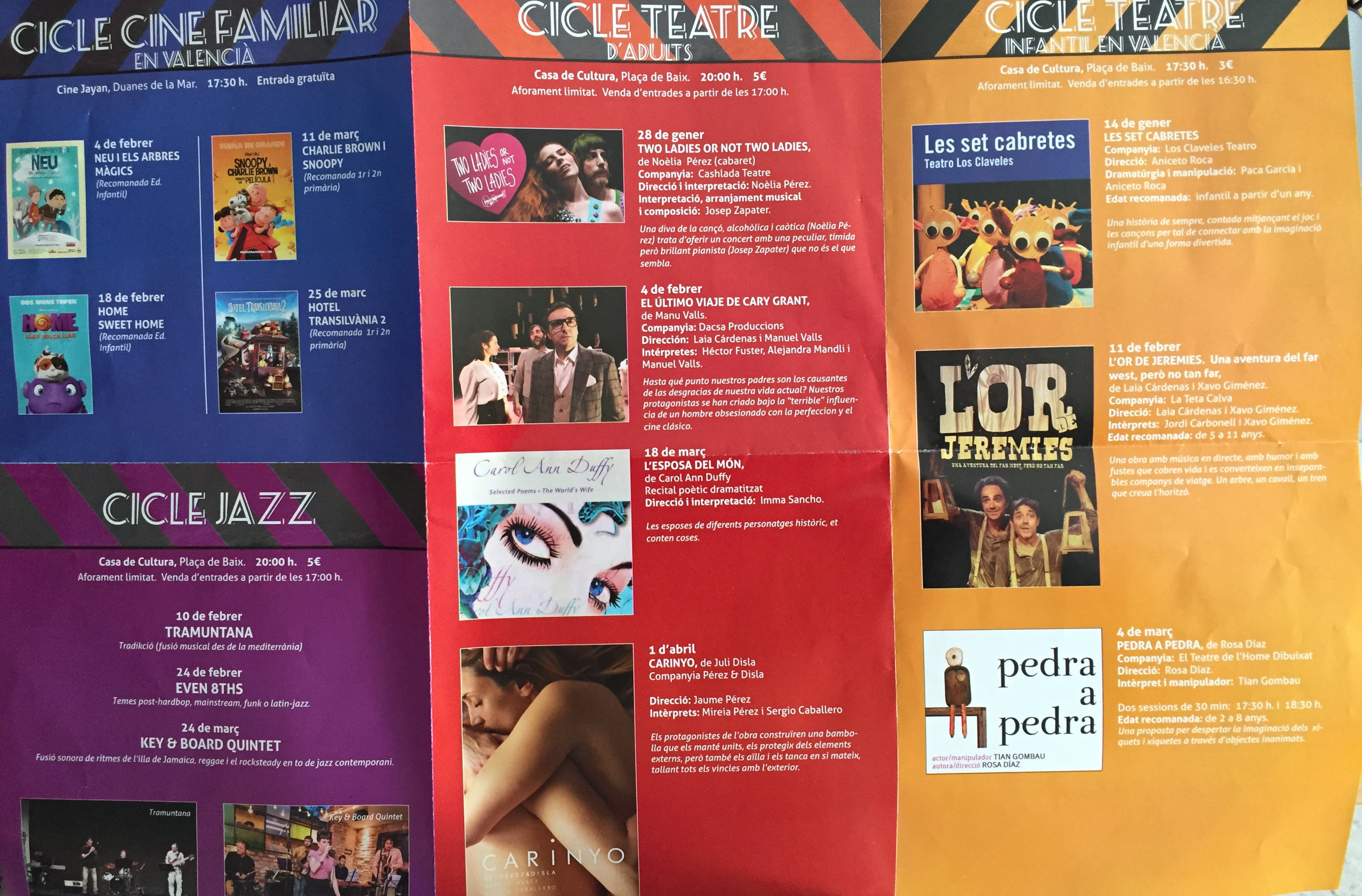 La concejalía de Cultura de Xàbia, dentro del programa de ciclos que ofrece durante todo el invierno, propone para los próximos días citas para todos los públicos.