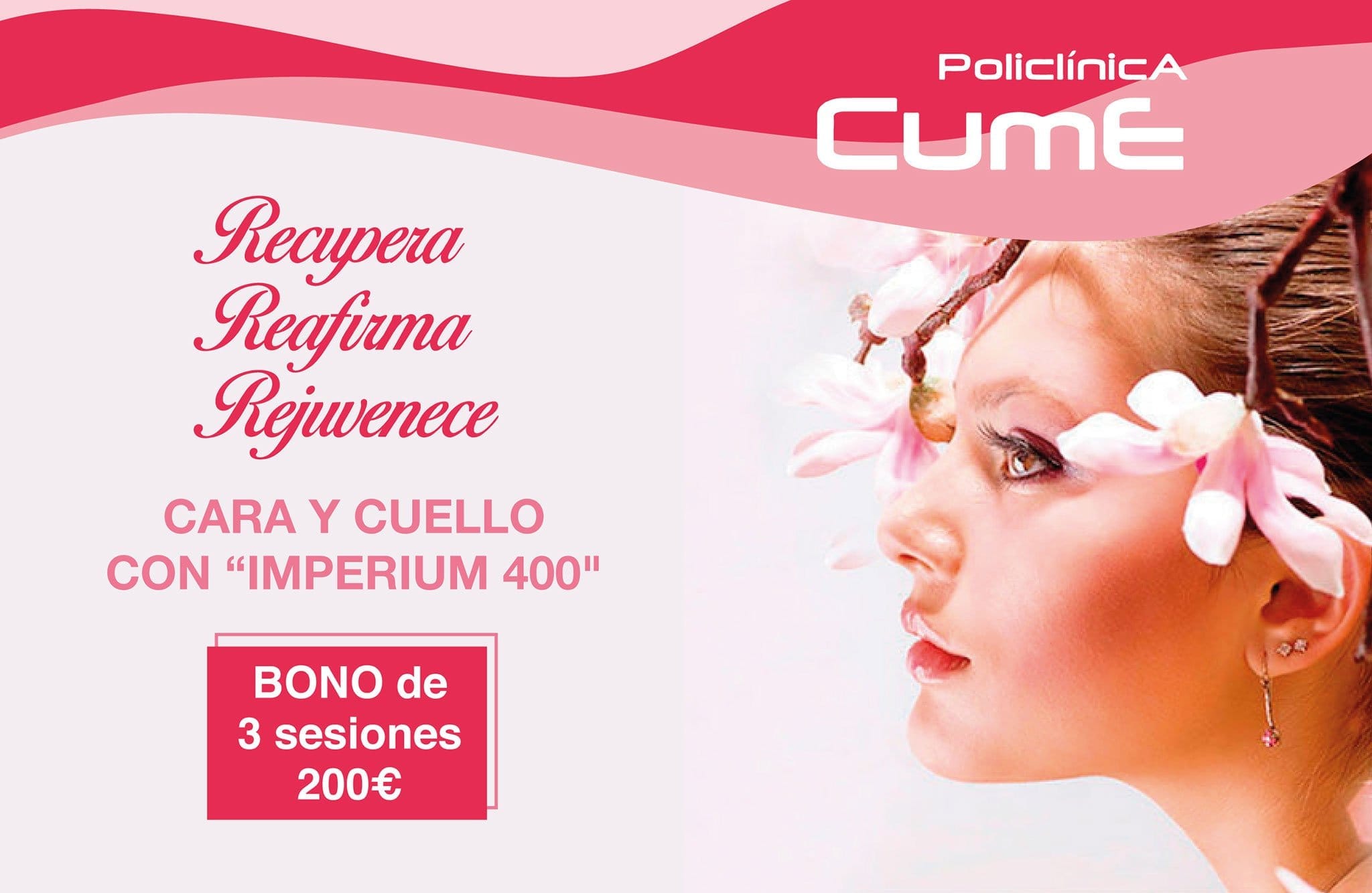 04 de marzo de 2021 - 08:21Con la plataforma Imperium 400. 1 de 2Foto SiguienteVer el artículo original: Ilumina y revitaliza tu cara y tu cuello con Policlínica CUME Tratamiento para cara y cuello en Policlínica CUME Logotipo de Policlínica CUME